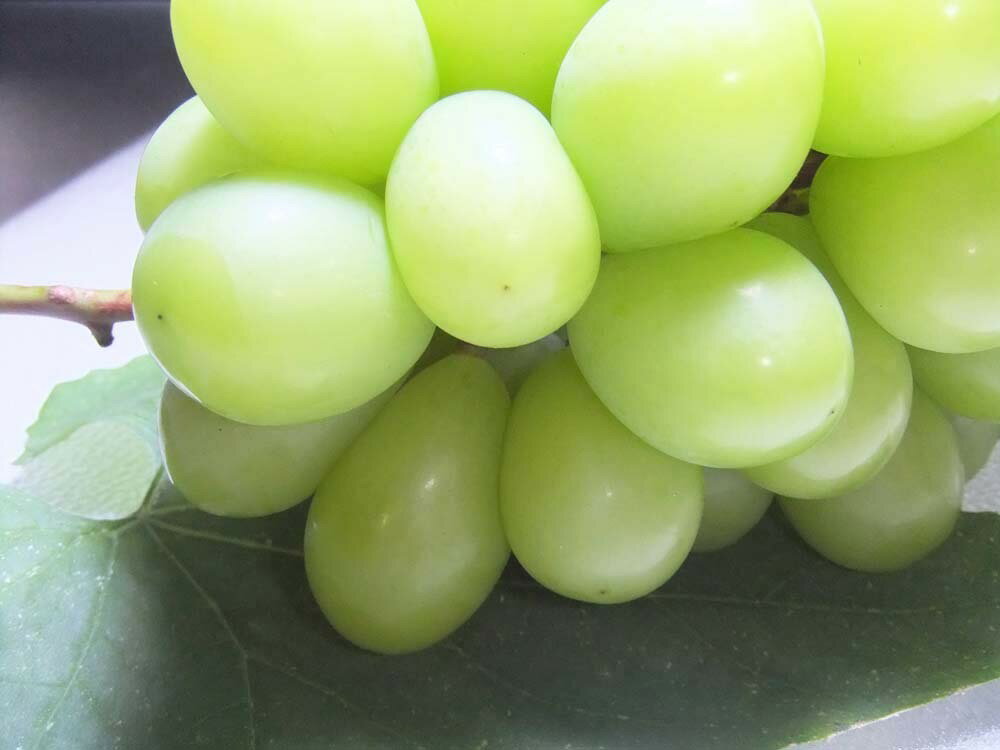 シャインマスカットは、マスカット本来の気品高い香りを持ち、糖度が高く・酸味が少なく、皮ごと食べることができるのが特徴です。