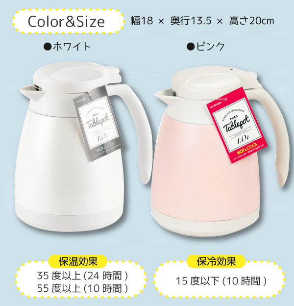 かわいいカラーとフォルムが素敵! ステンレステーブルポット 保温 保冷 レイナ ステンレス製 ポット 1.0L 1000ml 1リットル 容量 reina 卓上ポット 白色 ホワイト ピンク パール金属 【RCP】【HB-2334 HB-2336】