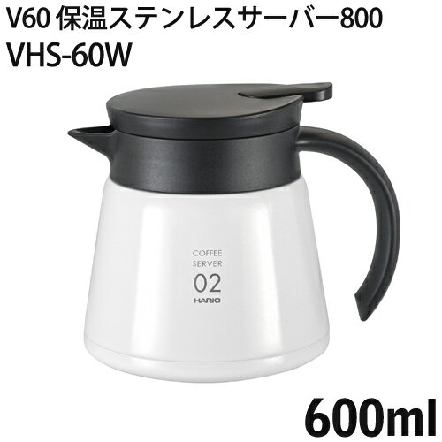 コーヒーサーバー ハリオ V60 保温ステンレスサーバー600ml 2-5杯用 ホワイト VHS-60W保温 ステンレス サーバー hario コーヒーポット ポット ドリップ ドリップポット おしゃれ 割れない 真空断熱構造 ギフト 人気 おすすめ ホワイト 珈琲 キッチン雑貨 送料無料