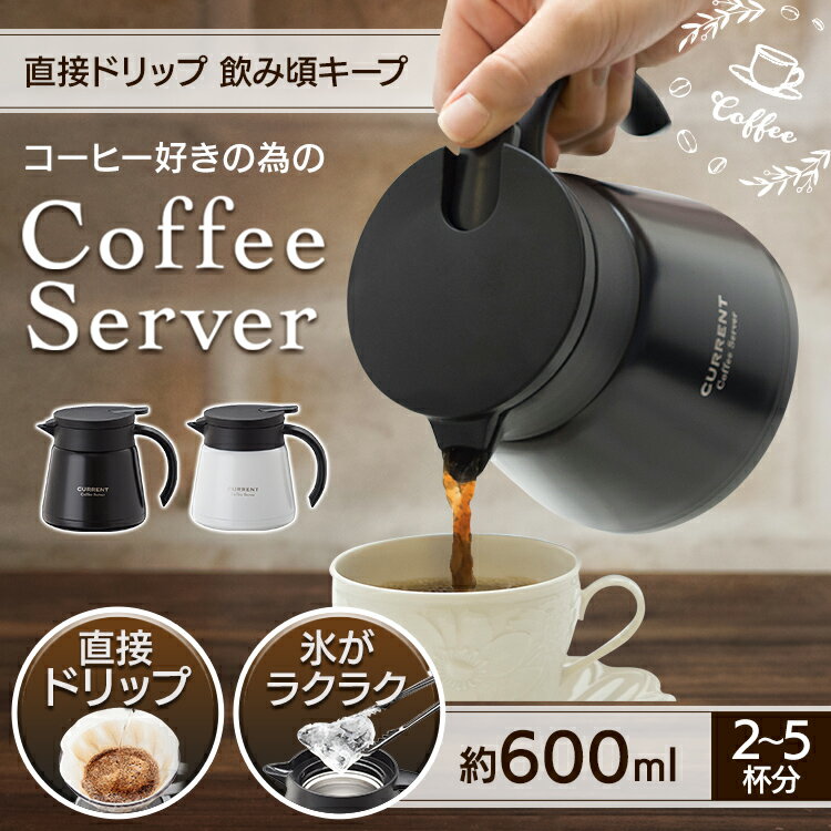 CURRENT コーヒーサーバー600ml ACS-601コーヒー 珈琲 ドリップ 保温 保冷 コーヒーポット ドリップポット ステンレス カレント アトラス ブラック ホワイト【D】一人暮らし