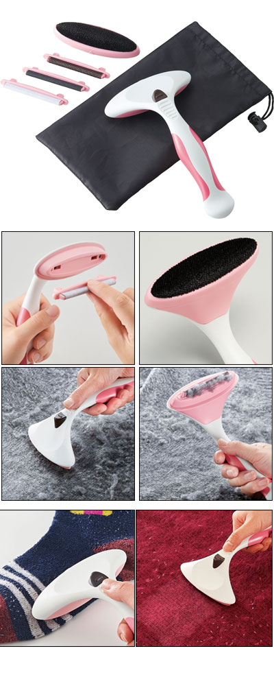 ●サイズ/幅11.5×奥行5.5×長さ20cm(リントブラシ含む)、エッジ:幅9×奥行2×高さ1.5cm●材質/リントブラシ・エッジ:ABS樹脂・熱可塑性エラストマー・ポリエステル、収納袋:ポリエステル●セット内容/本体1、リントブラシ1、エッジ3(大きな毛玉用、中くらいの毛玉用、繊細な生地の毛玉用)、収納袋1●生産国/中国 ・面倒な毛玉取りが簡単に。