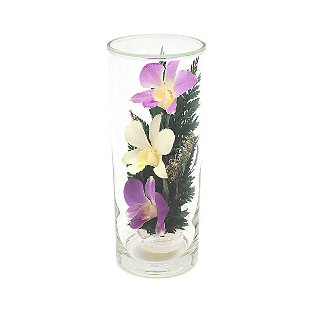 ガラス製の器に入ったキレイなプリザーブドフラワーです。