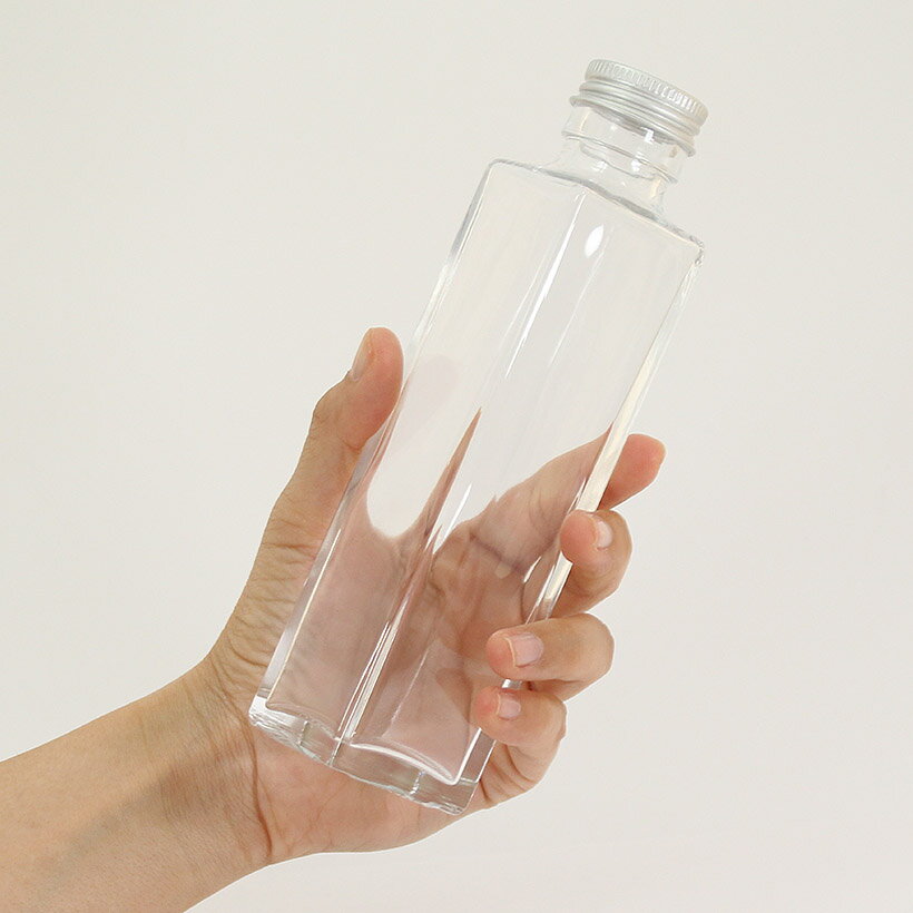 ガラスの角瓶なのでハーバリウムやディフューザー用にお使い頂けます。