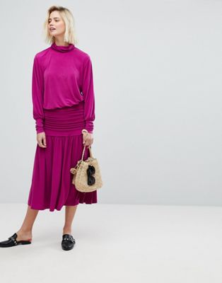 ウェアハウス ミディ スカート 紫 パープル レディース 女性用 レディースファッション ボトムス 【 PURPLE WAREHOUSE RUCHED MIDI SKIRT 】