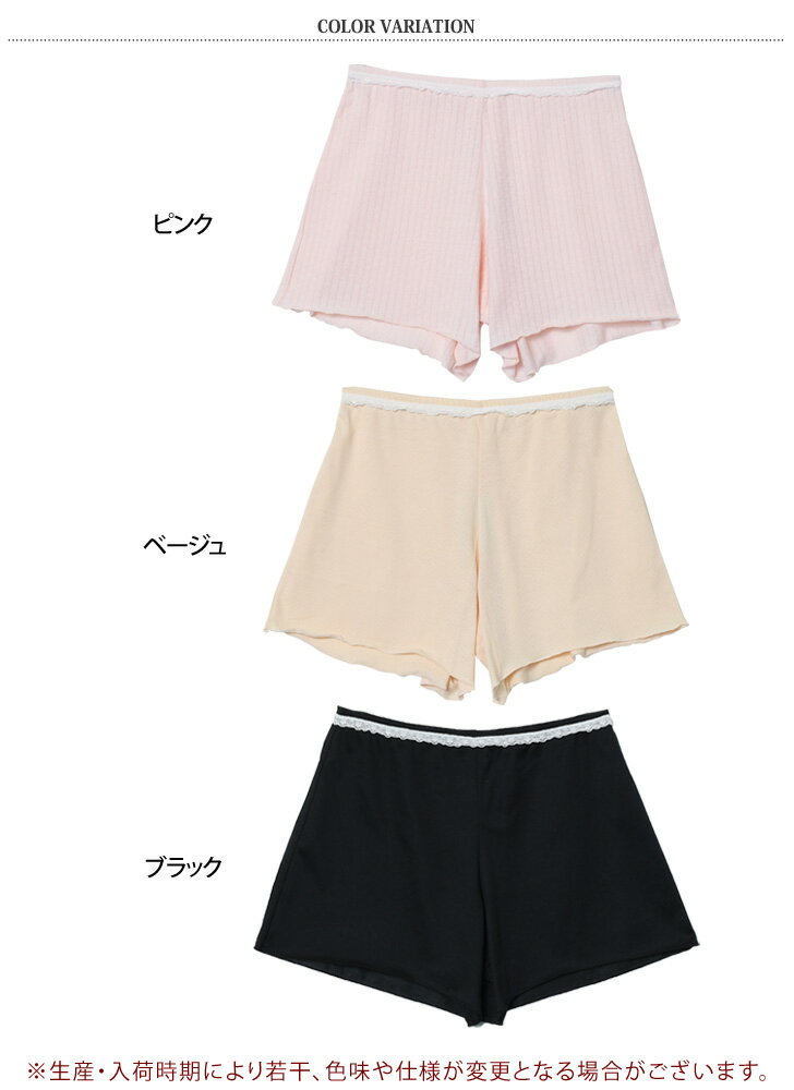 送料無料 レースライン1分丈トランクスコットンショーツボトム レディース パンツ 下着 綿100% 一分丈 深履き クロッチ付き 一枚履き インナー ボトムス ペチコート ショートパンツ リラックス 部屋着 大きいサイズ メール便